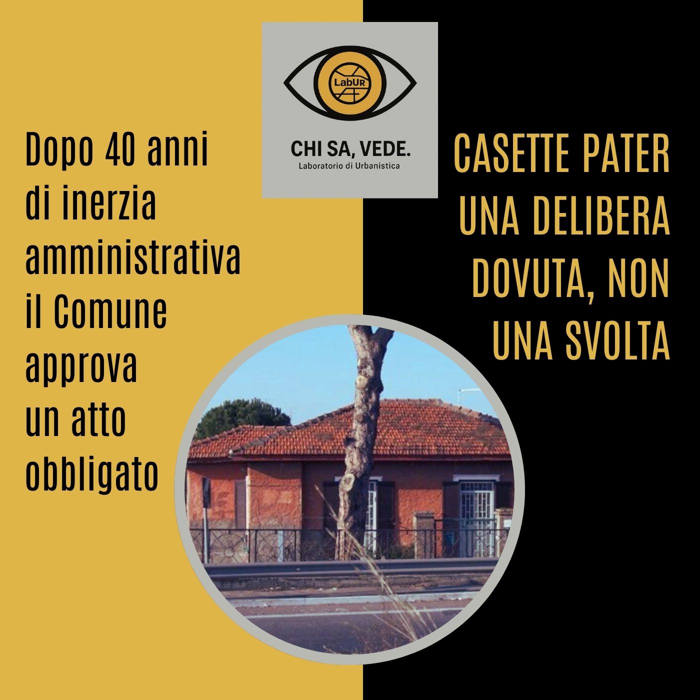 CHI SA, VEDE: “CASETTE PATER, VOTATA LA DELIBERA”. PILLOLE DI URBANISTICA #20